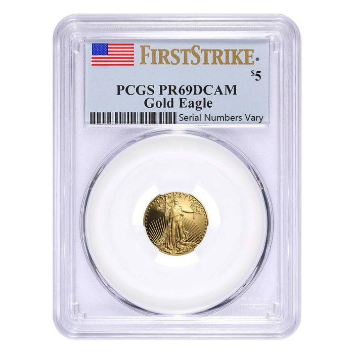 The smallest and lightest American Gold Eagle Proofs' near-perfect PF-69 graded specimens are now available at SD Bullion. These Random Year 1/10 oz PCGS PF-69 Graded American Gold Proofs are perfect for both collectors or investors looking to complete sets or simply diversify their precious metals portfolios.Â