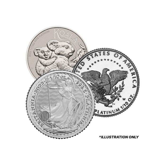 These platinum coins, sourced from several reputable mints, are guaranteed to contain 1/10 oz of .9995 fine platinum bullion.