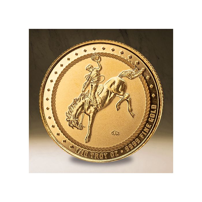 The 1/10 oz Scottsdale Mint Cowboy Gold Round is an exclusive SD Bullion product.