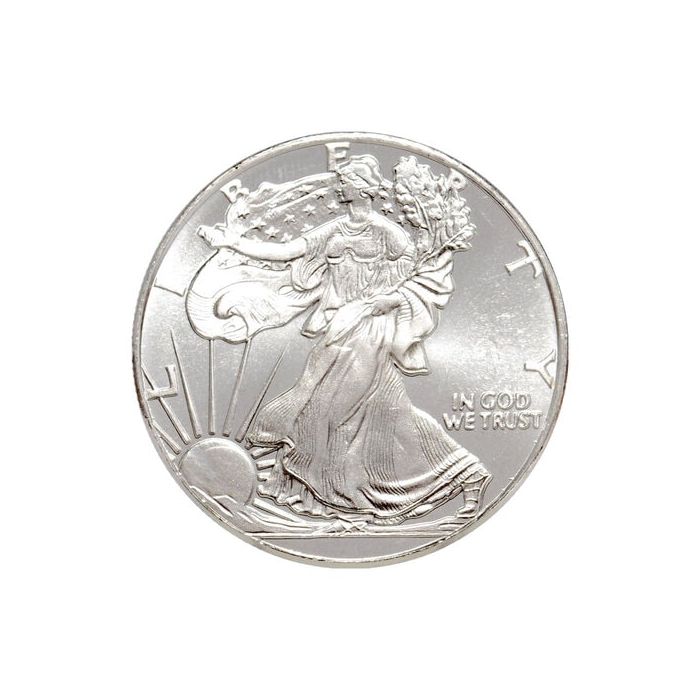 Each of these silver rounds contains 1/10 troy ounces of 0.999 pure silver. As these Walking Liberty Silver Rounds are replicas of American Silver Eagles, they do not carry a legal tender face value as the Silver Eagles do.