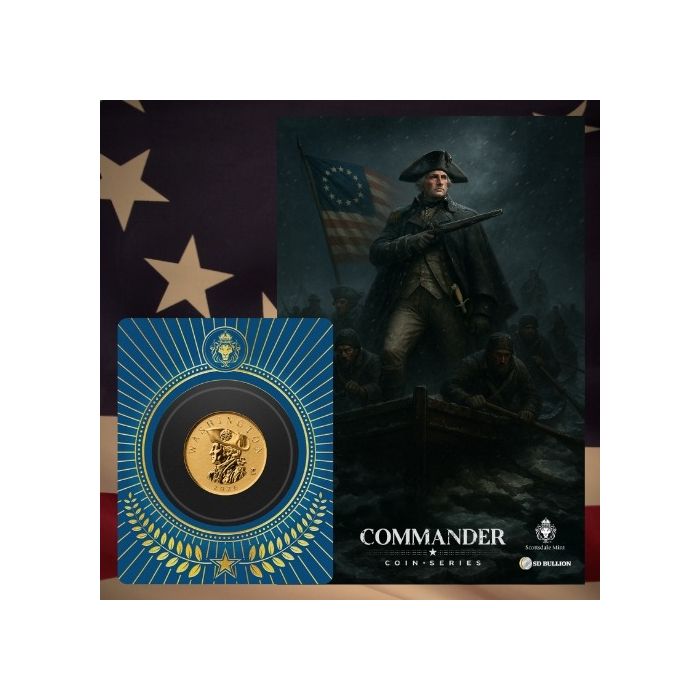 Available at SD Bullion, this gold release is ideal for collectors of historical-themed bullion, fans of the Commander Series, and those seeking fractional gold with strong visual appeal.