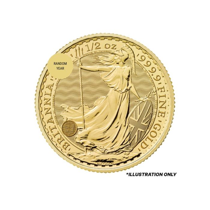 SD Bullion ensures authentic 1/2 oz Gold Britannia Coins weighing a half-ounce of 99.99% pure gold. However, these coins are randomly selected according to our stock availability at the moment of shipping. Hence, obverse designs and year of mintage are variable.