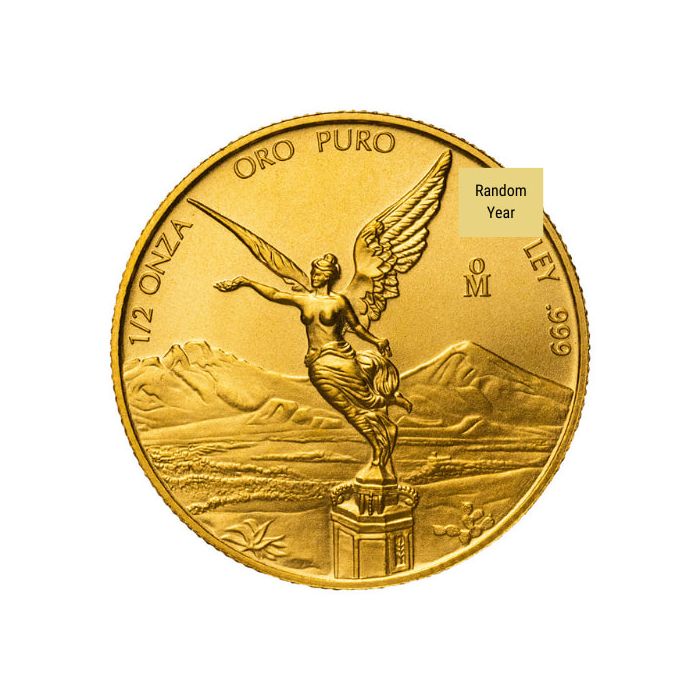 This listing offers 1/2 oz Gold Libertad Coins of varied mint years, randomly selected from our inventory according to our availability at the time of shipping.