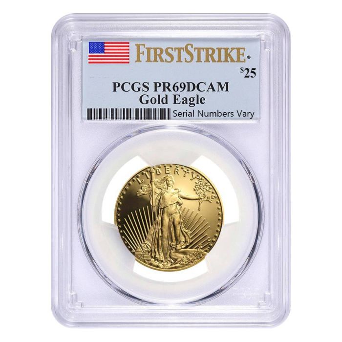 American Gold Eagles are already a household name in the precious metals market. Hence, their proof variants understandably command even more respect in this market. SD Bullion is proud to offer the 1/2 oz PCGS PF-69 American Gold Eagle Proof Coins released across these past few decades of their existence. Although you are assured authentic, PCGS PF-69 graded American Gold Eagle Proofs in your order, their year of issue will depend largely on our stock at the time of shipping.Â