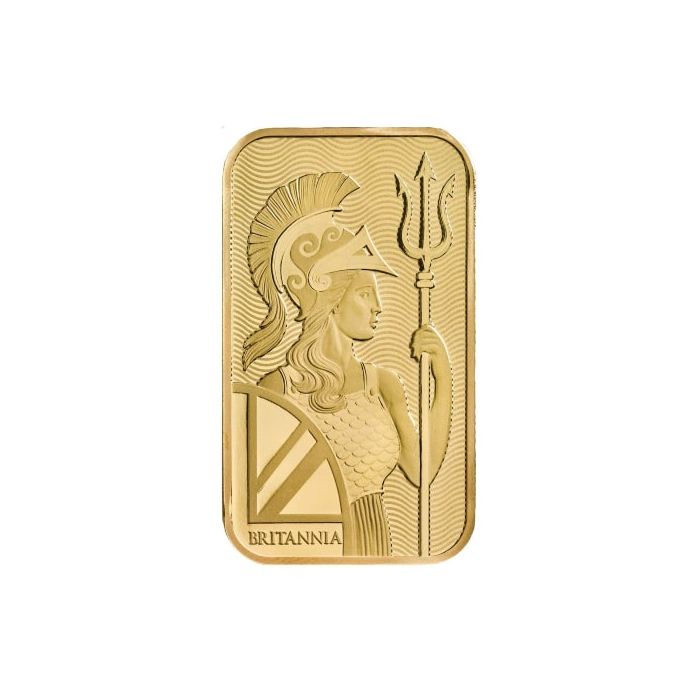 Besides their famous Gold Coins, the Royal Mint also makes 1 oz Gold Bars with the same motif: Britannia.