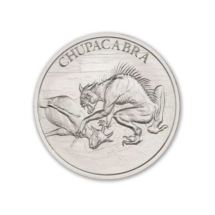 The obverse of these rounds will feature a Chupacabra feasting on the blood of a goat carcass. This depiction of the Chupacabra is based off the eyewitness reports from those who claim to have seen the Chupacabra.