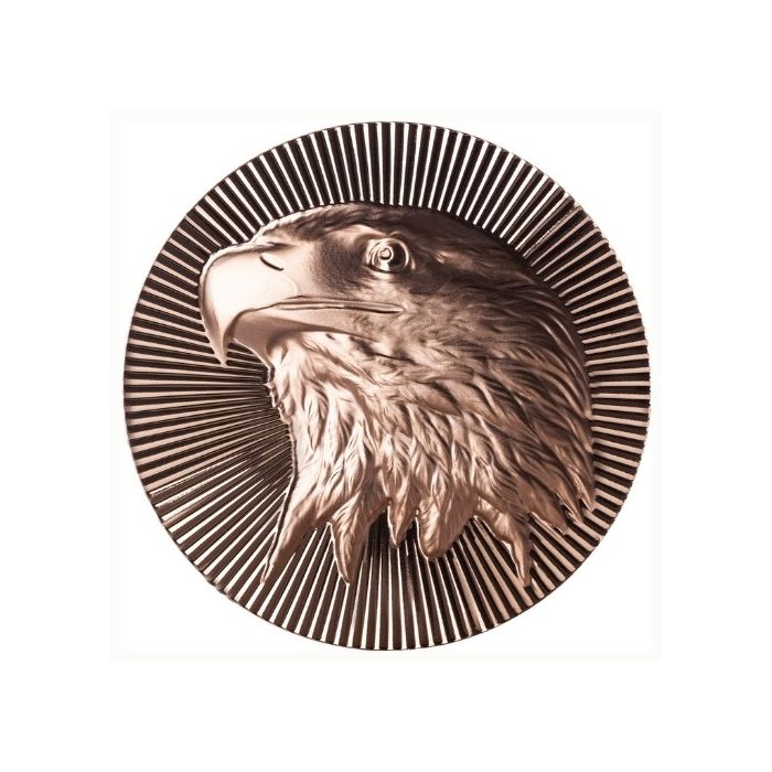 Therefore, both sides of the round showcase a close-up, front-facing Bald Eagle. One side displays the eagle in high relief, while the opposite shows a recessed (concave) version of the same image.