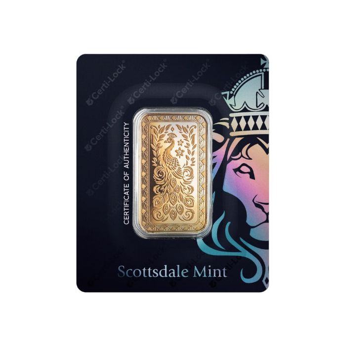 Today, you can acquire the 1 oz Marquee Peacock Gold Bar at SD Bullion.