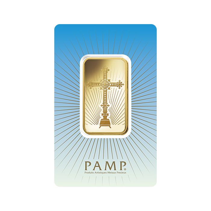 Snag these 1 oz PAMP Suisse Faith Series Romanesque Cross Gold Bars and accumulate pure gold content while celebrating a major world religion at the same time. These