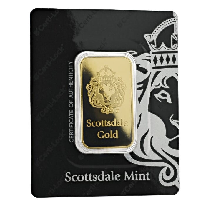 Gold bars have always been a popular choice for investors who want to accumulate pure gold. However, gold bars like these 1 oz Scottsdale Mint Lion Gold Bars in Certi-Lock offer not only pure gold content, but also gorgeous, memorable designs.