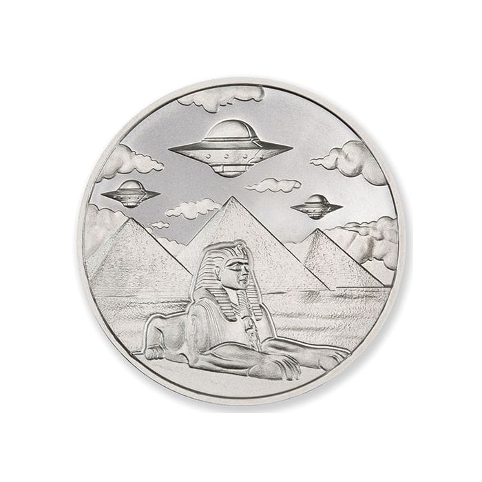 You can have fun while you make great deals. 1 oz UFOs over the Pyramids Silver Rounds match the most creative designs and high-quality silver bullion.