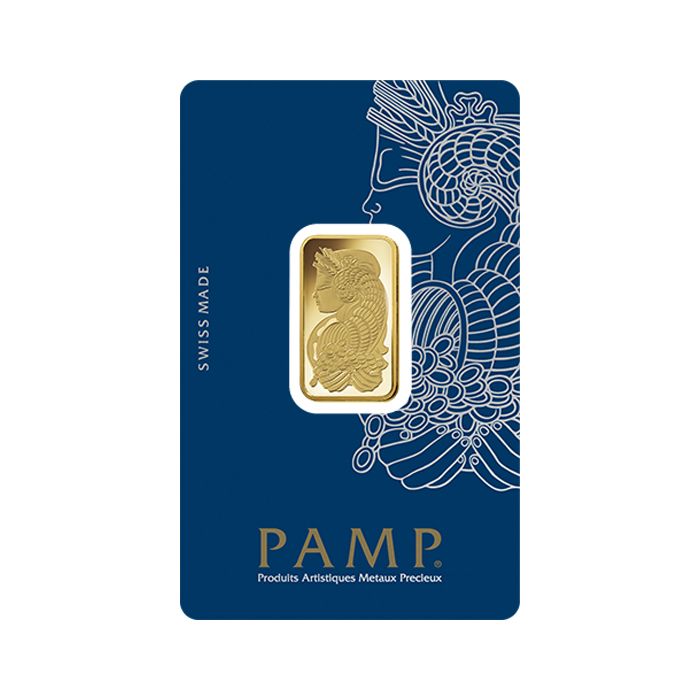 10 Gram Pamp Suisse Gold Bars For SaleFeaturing the well-known Lady Fortuna portrayal, the 10 g PAMP Suisse Lady Fortuna Gold Bars are now available at SD Bullion. These bars are released in various sizes to cater to a variety of buyers, needs. and budgets. PAMP Suisse is a premier precious metals refinery and mint based in Ticino, Switzerland. PAMP's immense capacity has allowed it to not only strike precious metals products under its own brand name, but also lend its services to sovereign governments and private companies with bullion needs. Each of these bars contains 10 grams of 0.9999 fine gold. The majestic depiction of Lady Fortuna graces the obverses of these gold bars as usual. She is blindfolded and clutches a cornucopia that is overflowing with fruit, grains, and flowers. According to Roman mythology, Lady Fortuna was the Goddess of Fortune and Luck. Her blindfold represents luck and fortune's fickle nature -- turning within an instant. On the other hand, the reverse sides bear the well-known PAMP Suisse logo, followed by the weight and purity of the gold, the assayer's mark, and the unique serial number assigned to the gold bar. These 10 g PAMP Suisse Lady Fortuna Gold Bars are incredible options for investors who want a mix of quality, 0.9999 pure gold, a trusted minting source, and brilliant designs. Grab them from SD Bullion today and enjoy the lowest premiums over spot!