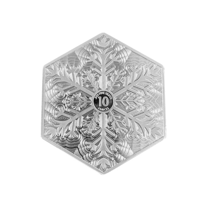 Buy the 2025 10 oz Elemental Snowflake Hexagon Silver Bar at SD Bullion