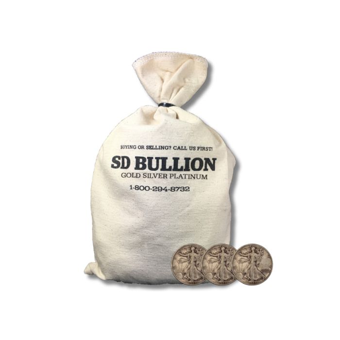 Today, SD Bullion offers $100 Face Value Bags, composed exclusively of Walking Liberty Half Dollar Coins, which corresponds to 200 coins of 90% silver.