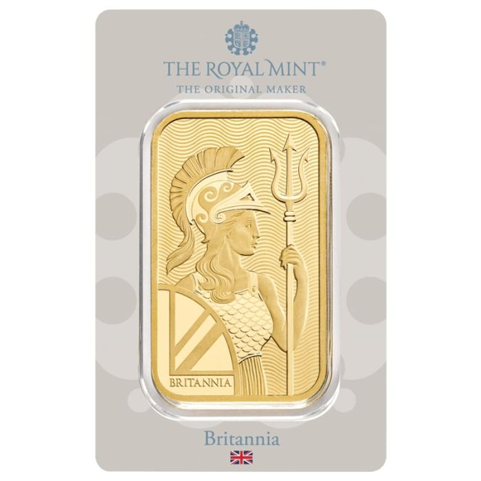 Made of 99.99% pure gold, these bars exhibit a brilliant luster, soft touch, rounded edges, and the famous Britannia design on the reverse side.