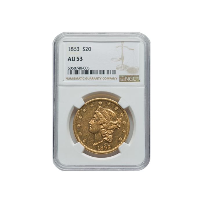 1863 NGC AU-53 $20 Liberty Double Eagle Gold Coin