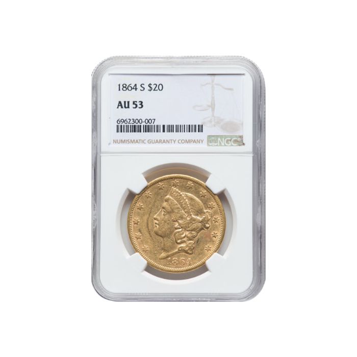 Shop the 1864 NGC AU-53 $20 Liberty Double Eagle Gold Coin online, 24/7, from SD Bullion.