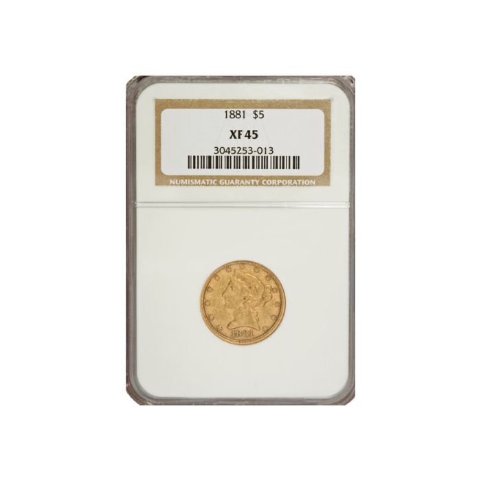 Invest in the 1881 NGC XF-45 $5 Liberty Head Gold Half Eagle Coin to enrich your gold collection.
