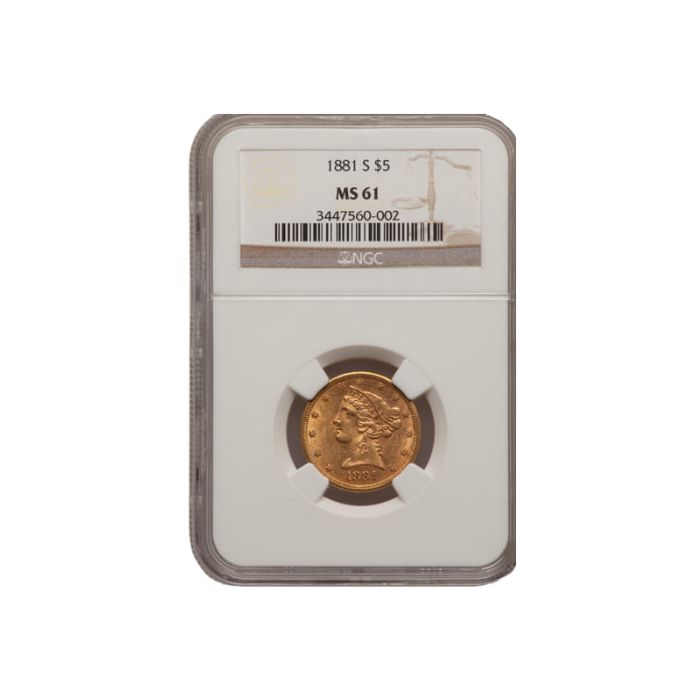 Buy 1881-S NGC MS-61 $5 Liberty Half Eagle Gold Coin - From Original Bag at SD Bullion