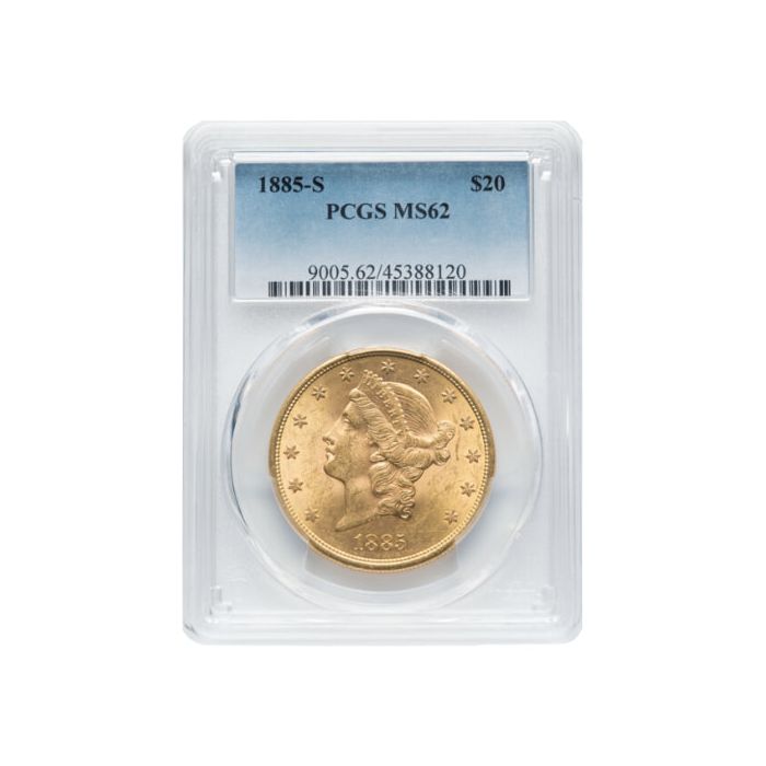 Today, SD Bullion sells 1885-S $20 Liberty Double Eagle Gold Coins sealed and certified by PCGS as MS-62 coins.