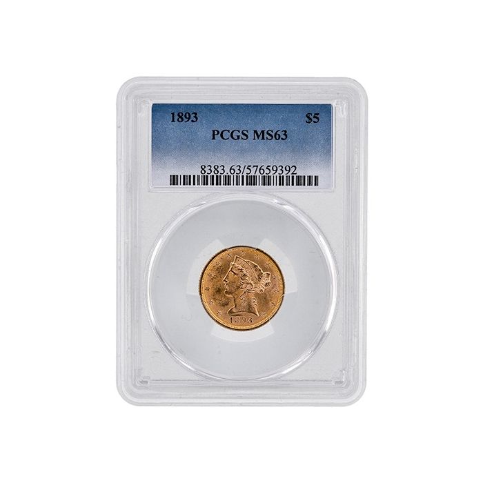 Purchase the 1893 PCGS MS-63 $5 Liberty Half Eagle Gold Coin online, 24/7, from SD Bullion.