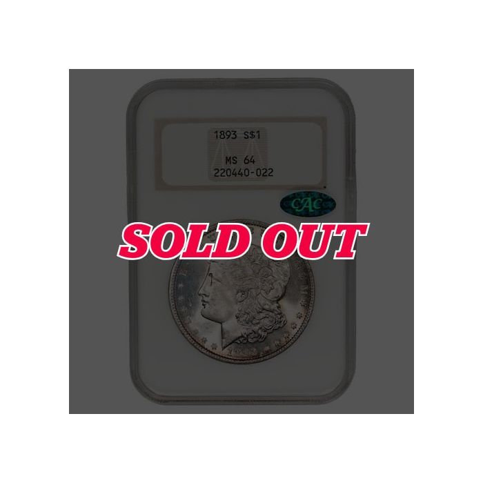 Buy 1893 US Morgan Silver Dollar NGC MS-64 CAC - Old Fatty Holder
