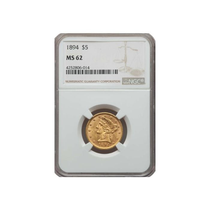 At SD Bullion, you can purchase 1894 $5 Liberty Half Eagle Gold Coins, graded as MS-62 by NGC.