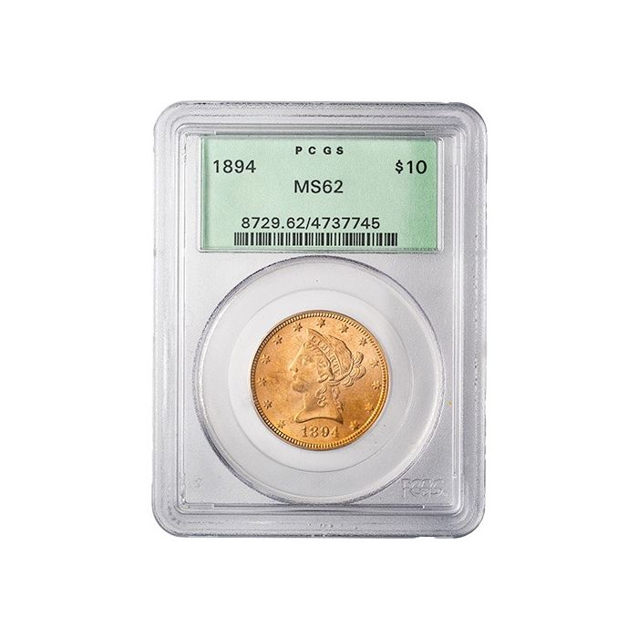 Add a PCGS MS-62 1894 $10 Liberty Eagle Gold Coin - Old Green Holder to your cart and shop online from SD Bullion.