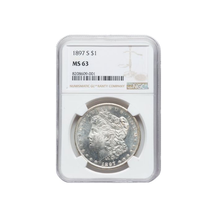 Add the 1897-S NGC MS-63 Morgan Silver Dollar Coin to your cart and shop online from SD Bullion, 24/7.