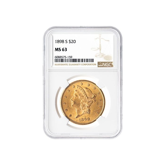 Today, SD Bullion sells 1898-S $20 Liberty Double Eagle Gold Coins sealed and certified by NGC as MS-63 coins.