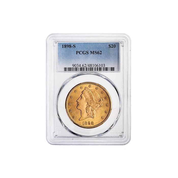 Purchase the 1898-S PCGS MS-62 $20 Liberty Double Eagle Gold Coin online, 24/7, from SD Bullion.