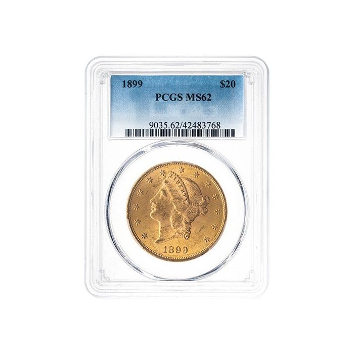 Today, SD Bullion offers the 1899 PCGS MS-62 $20 Liberty Head Double Eagle Coin, encapsulated and graded as MS-62 by PCGS.