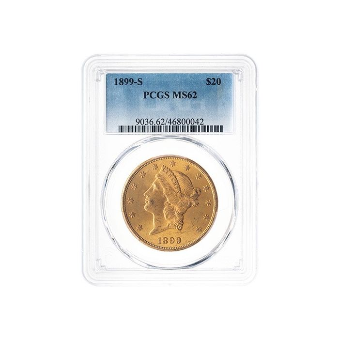 Purchase the 1899-S PCGS MS-62 $20 Liberty Double Eagle Gold Coin online, 24/7, from SD Bullion.
