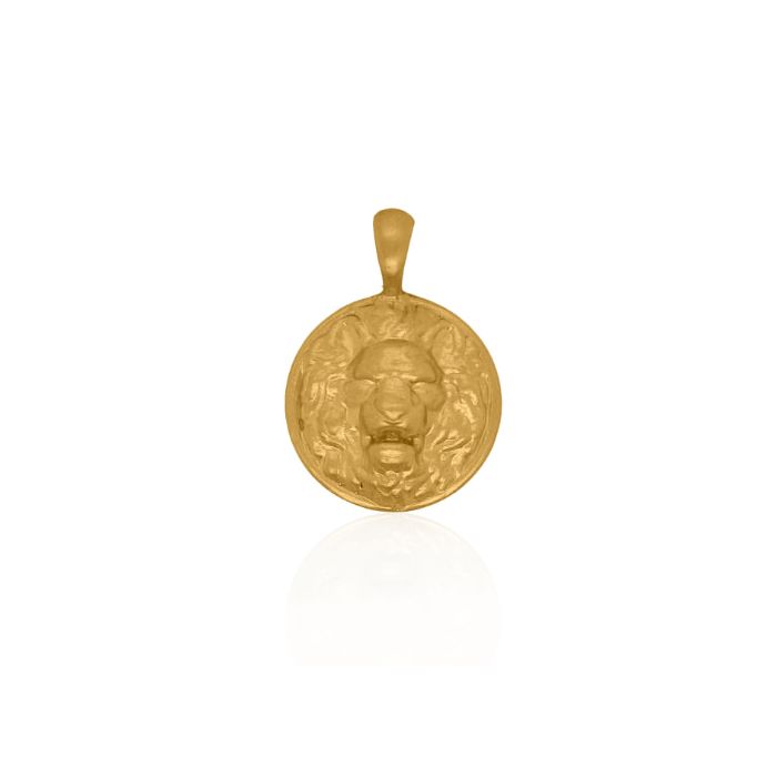 The Leo pendant is circular, 19.5 mm in diameter and 5.92 mm in height. It features a lion's head engraved in high relief with a matte finish, which gives it a lively aspect.