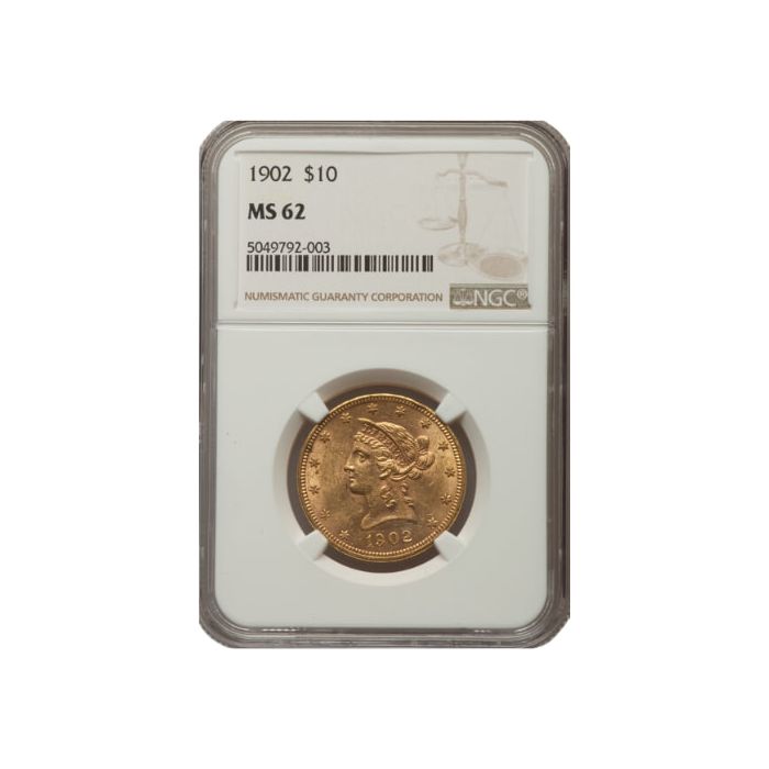 At SD Bullion, you can acquire 1902 $10 Liberty Eagle Gold Coins, graded by NGC as MS-62 samples.