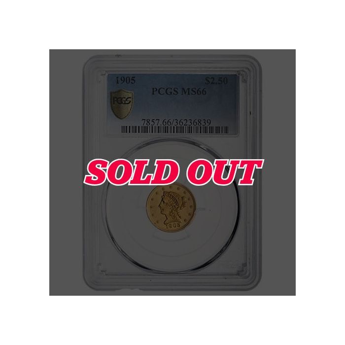 You can find 1905 $2.50 Liberty Quarter Eagle Gold Coins, sealed and certified by PCGS as an MS-66 sample, at SD Bullion.