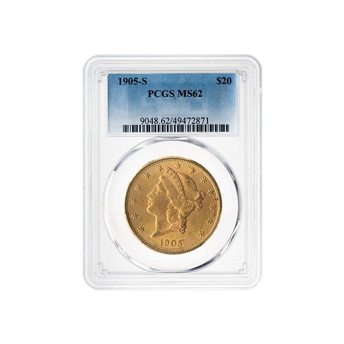 Today, you can acquire 1905-S $20 Liberty Double Eagle Gold Coins, sealed and certified by PCGS as MS-62 coins at SD Bullion.