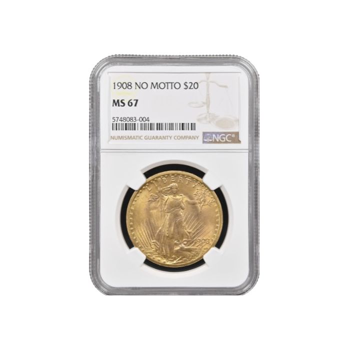 Purchase the 1908 NGC MS-67 $20 St. Gaudens Double Eagle Gold Coin - No Motto online from SD Bullion.