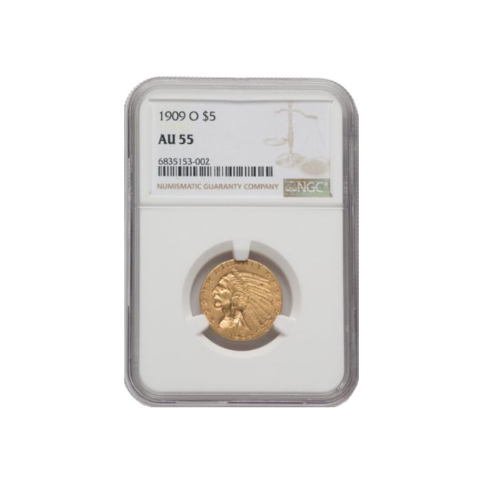 Buy 1909-O NGC AU-55 $5 Indian Half Eagle Gold Coins at SD Bullion