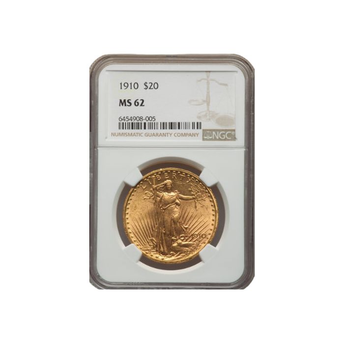 Today, you can find the 1910 $20 St. Gaudens Double Eagle Gold Coins, graded by NGC as MS-62 samples at SD Bullion.