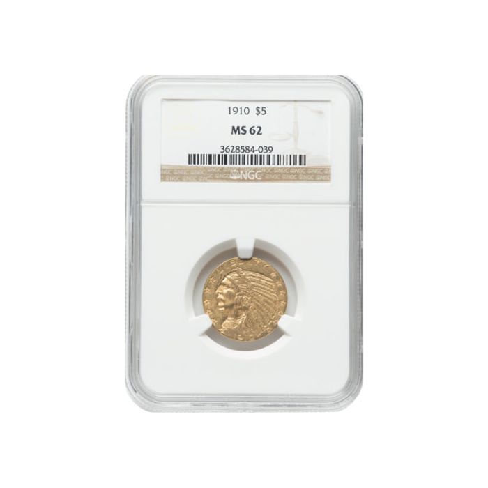 1910 NGC MS-62 $5 Indian Head Half Eagle Gold Coin