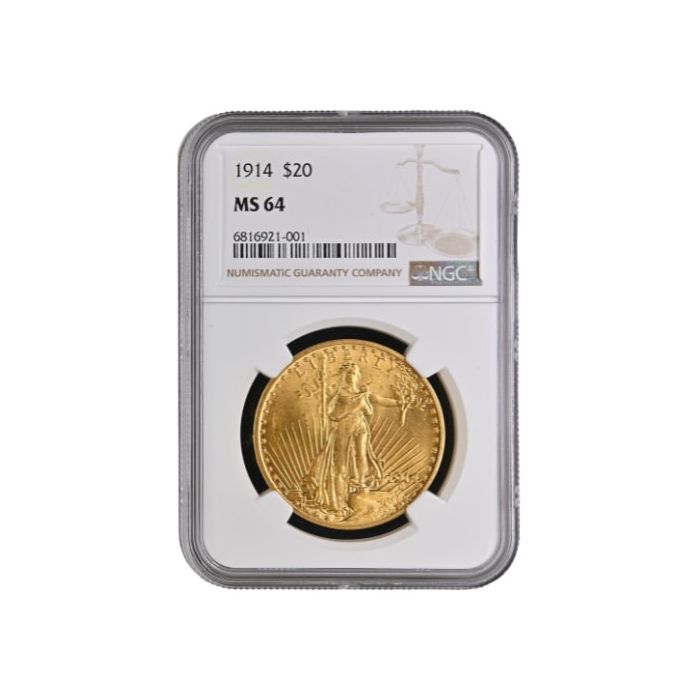 Today, SD Bullion offers 1914 $20 St. Gaudens Double Eagle Gold Coins, graded by NGC as MS-64 samples.