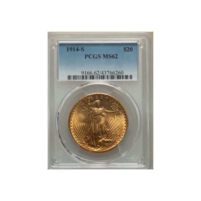 Today, SD Bullion sells 1914-S $20 St. Gaudens Double Eagle Gold Coins, graded by PCGS as MS-62 samples.