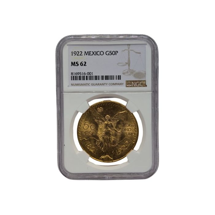 Today, SD Bullion offers the 1922 Mexican 50 Pesos Gold Coin, which has been sealed and certified by NGC as an MS-62 coin.