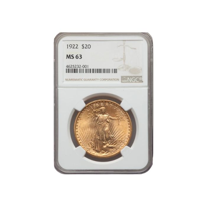 SD Bullion has in stock 1922 $20 St. Gaudens Double Eagle Gold Coins graded as MS-63 by NGC.