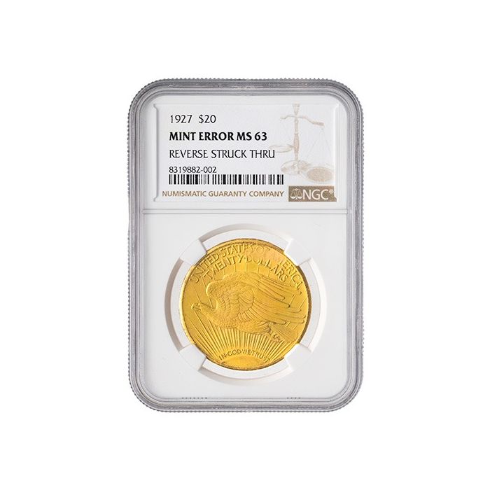 You can find at SD Bullion 1927 $20 St. Gaudens Double Eagle Gold Coins with Mint Reverse Strikethrough errors. NGC authenticated the errors and also graded the coins as MS-63 samples.