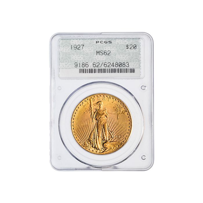 Enhance your collection with the 1927 PCGS MS-62 $20 St. Gaudens Double Eagle Gold Coins in Original White Holders.