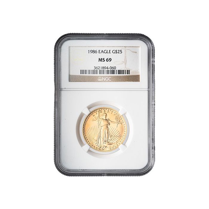 Today, SD Bullion offers 1986 1/2 oz American Gold Eagle Coins, sealed and certified by NGC as MS-69 samples.