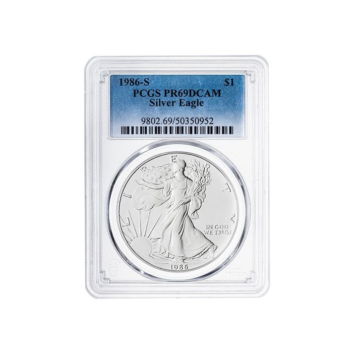 Today, SD Bullion offers 1986 1 oz American Silver Eagle Proof coins, sealed in PCGS slabs and graded as PR-69 coins.