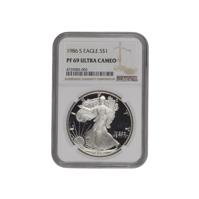 Shop the 1986-S NGC PF-69 1 oz American Silver Eagle Proof Coin online, 24/7, from SD Bullion.